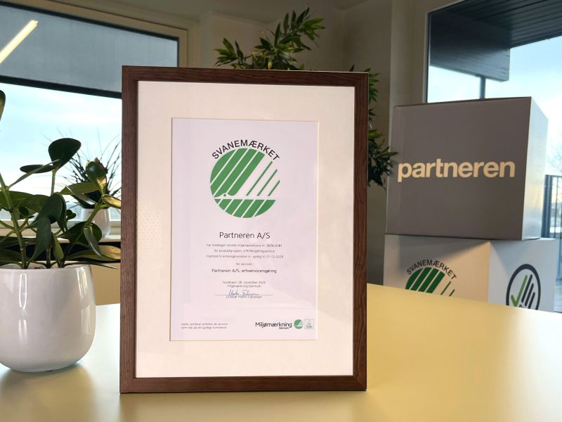 Partneren A/S har fået fornyet sin Svanemærket-licens efter de nye kriterier, der træder i kraft den 31. december 2025. Det giver vores kunder en endnu mere miljørigtig, ansvarlig og veldokumenteret service.